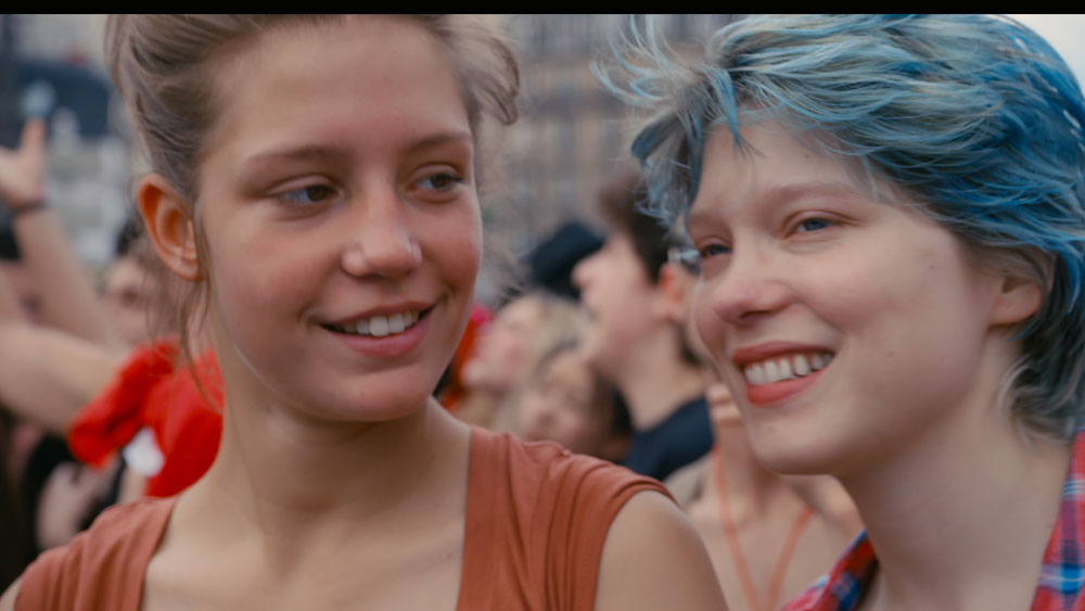 Zo vergaat het Adèle, een 17-jarig meisje op zoek naar haar seksuele identiteit. Geen tiener in de clinch met haar ouders of de school. Neen, Adèle vindt de pasta van haar pa heerlijk en is gek op literatuur. Over een eerste valkuil is Kechiche dan al moeiteloos heen gesprongen. We zien een onzeker, maar normaal meisje dat op meisjes valt en daarmee worstelt, veel meer is er niet aan de hand. Ze wordt verliefd op Emma, een studente kunstonderwijs, ouder in jaren. Zij wordt vertederd door Adèles lieflijke kwetsbaarheid en uitdrukkelijke schoonheid. Er is wat in de maak.